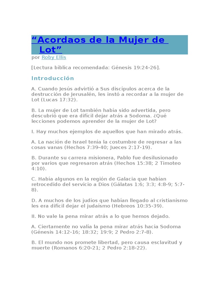 . Recuerde La Mujer de Lot BOSQUEJO NUEVO | Salvación | San Pedro Romanos 8 35 39 Biblia Catolica - bedliner 20 doctrinas bíblicas - LiteraturaBautista