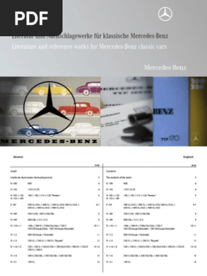 Important Order Numbers To Literature And Reference Works For Mercedes Benz Classic Cars Rear Wheel Drive Vehicles Car