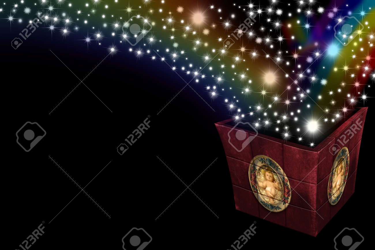 Immagini Stock - Scatola Con Foto Del Bambino Gesù Di Luce E Stelle Che Esce Image 10907789.