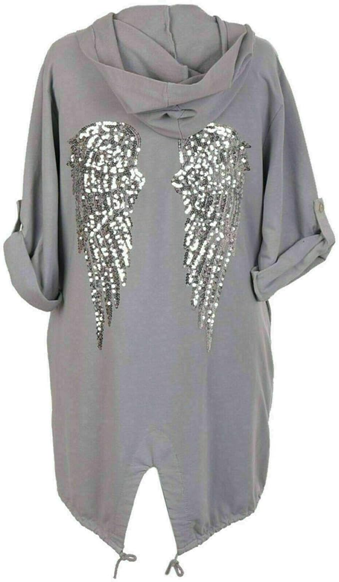 Italian Collection Damen Strickjacke mit Engelsflügeln, mit Kapuze, lang, Camouflage-Jacke Gr. One size, hellgrau: Amazon.de: Bekleidung