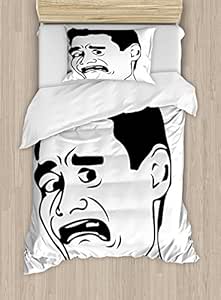 Ambesonne Humor Duvet Cover Set Twin Size, Confused Man Meme with WTF Facial Gesture Caricature Style Comics Graphic Art, Decorative 2 Piece Bedding Set with 1 Pillow Sham, Black and White: Amazon.in: